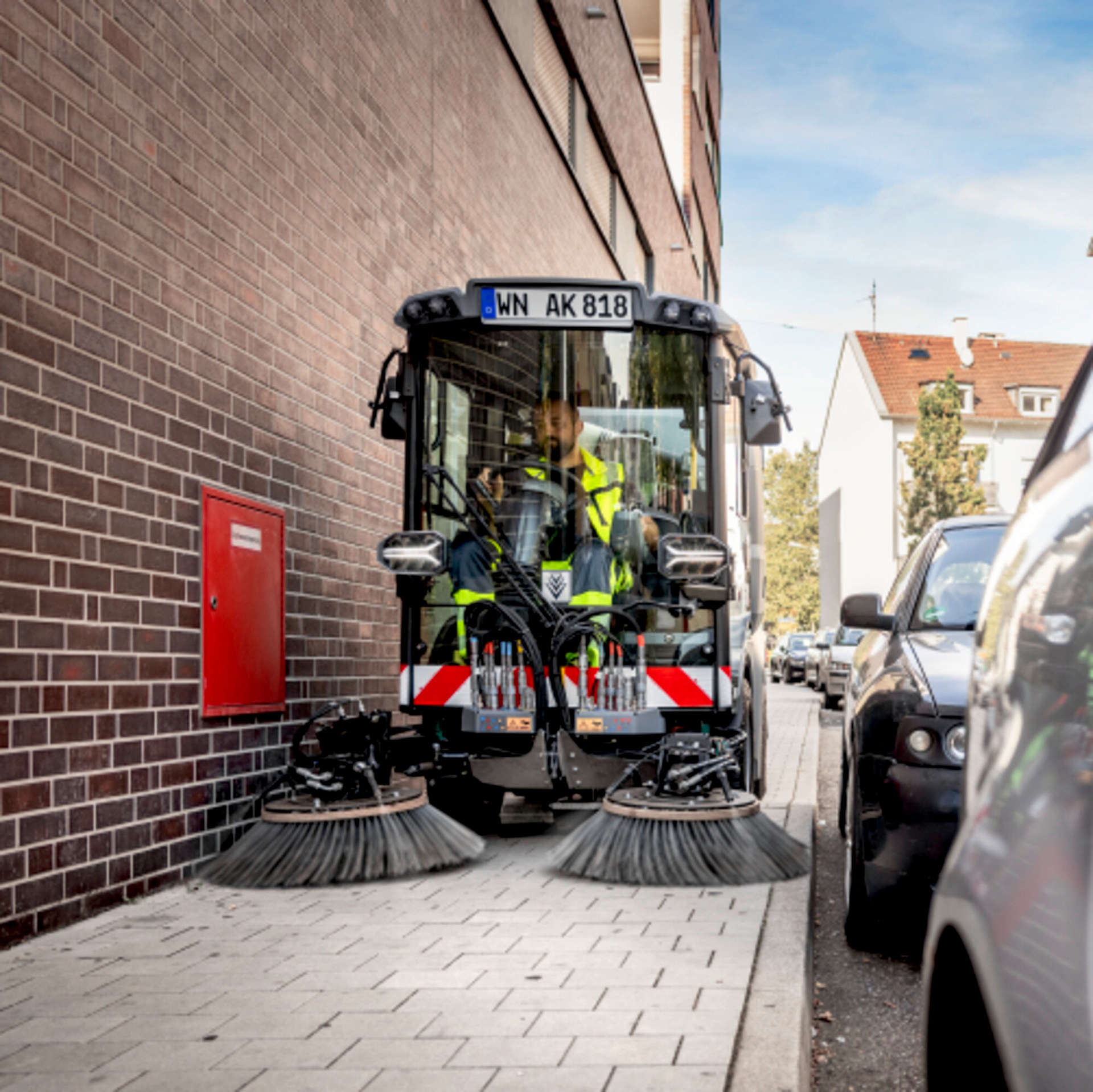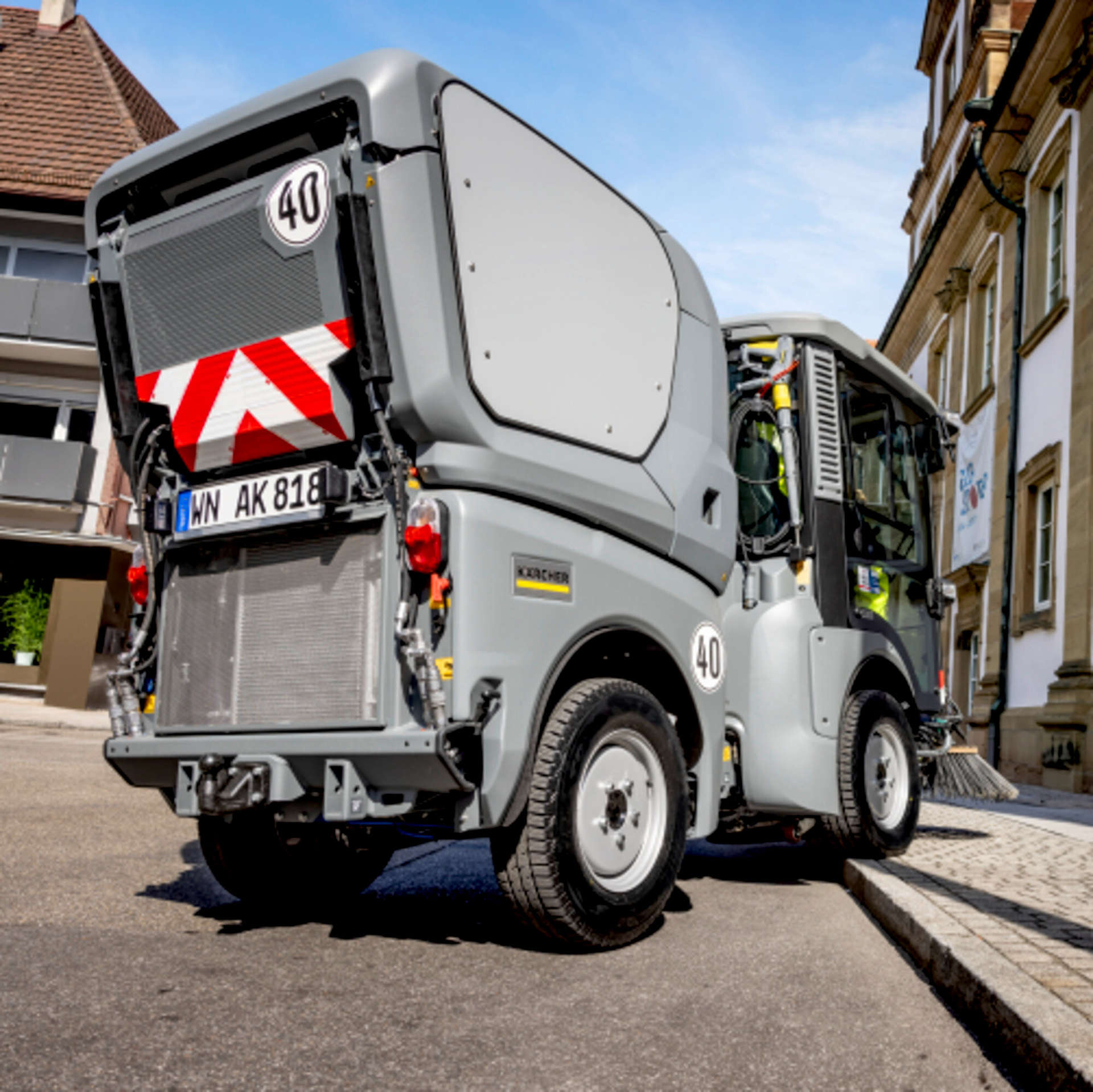 由於允許的總重量僅為 3.5 噸,因此完全適合人行道。(根據當地法規有所不同) 一流的機動性和 100% 方向穩定性,使狹窄區域的工作變得更加輕鬆。 潛在用戶群大,一般駕照即可駕駛。(根據當地法規有所不同)