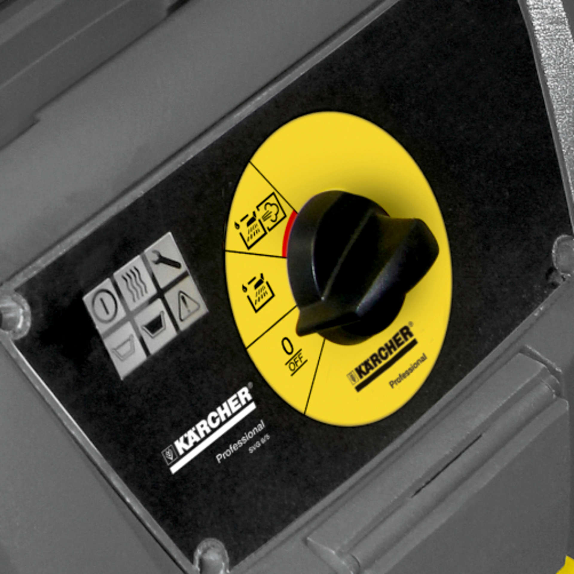 由於具有圖形化的符號,因此特別用戶友好。無需耗時的學習。 開關和蒸氣清潔 / 濕式吸水清潔。 冷水沖洗:用冷水預沖洗嚴重污染的表面。